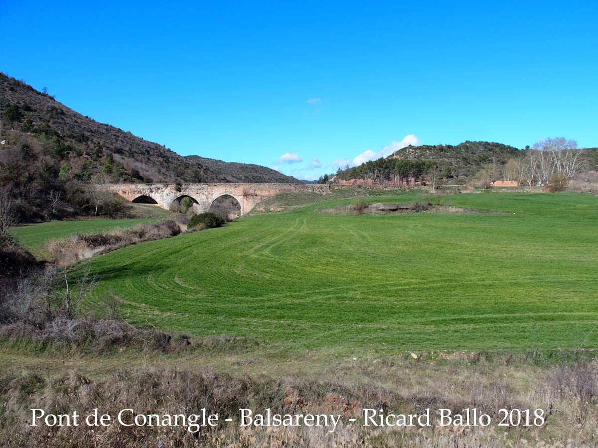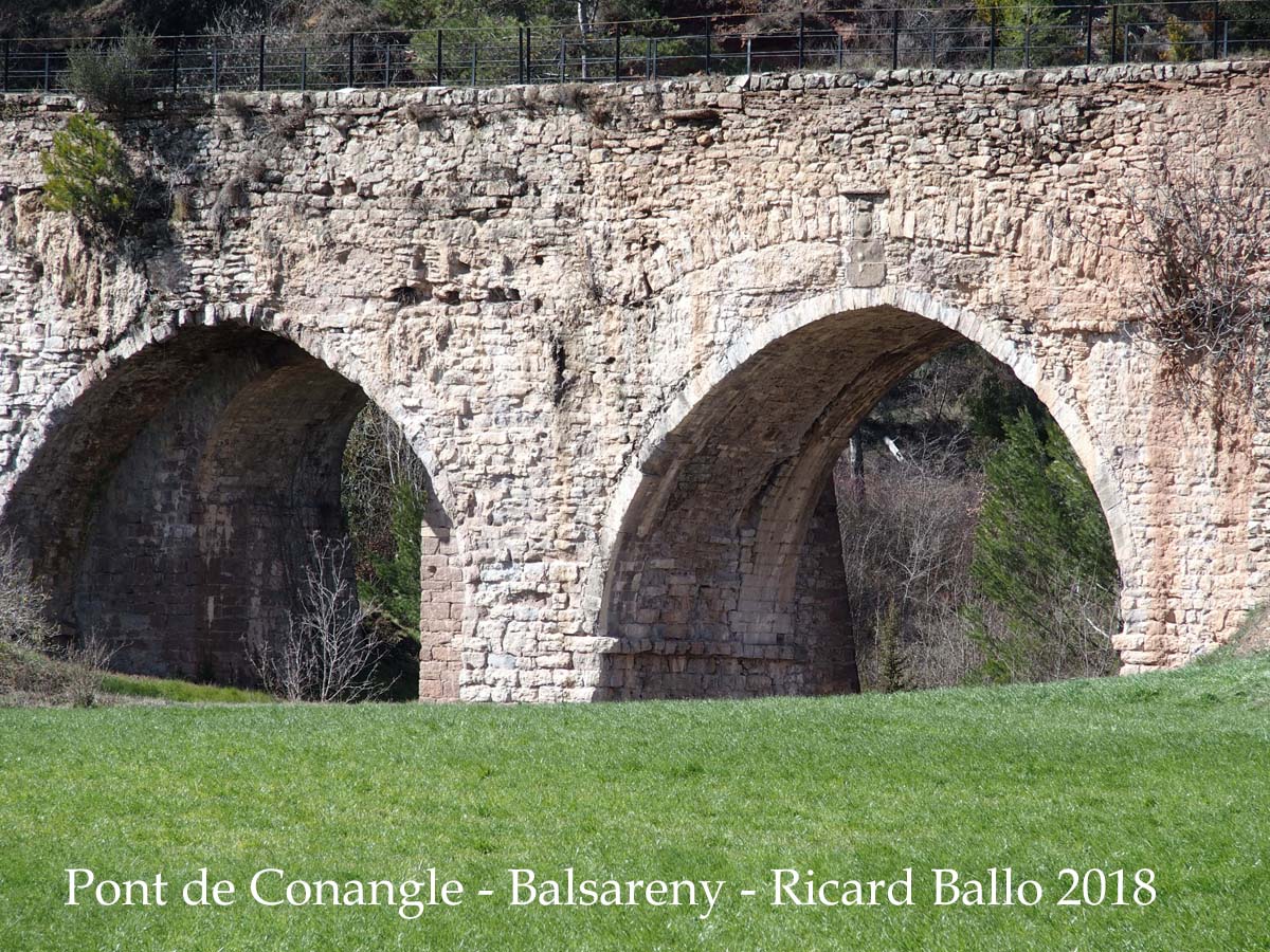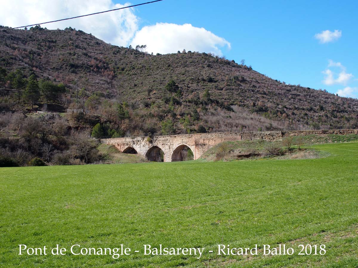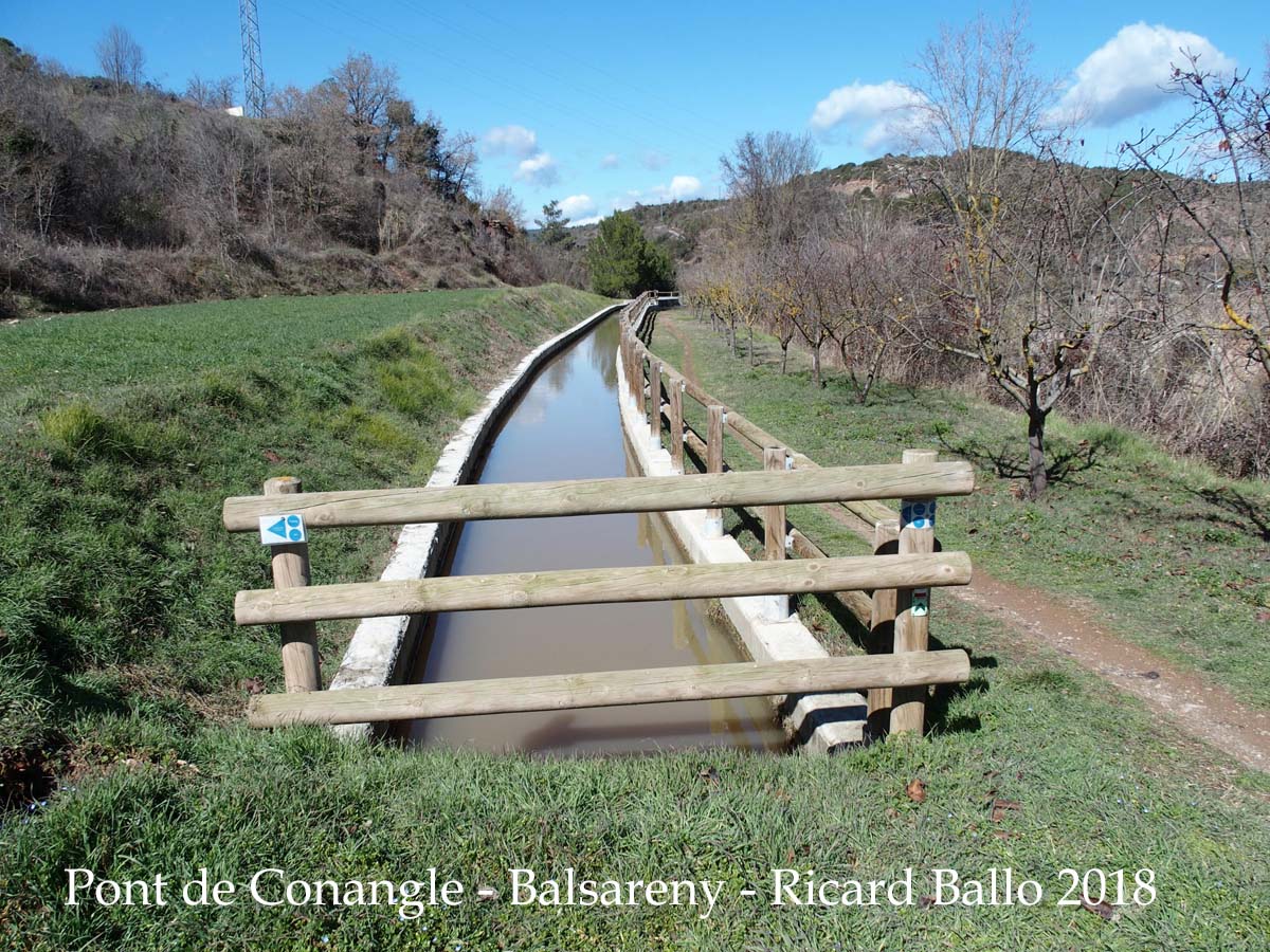 Situació: Pont-aqüeducte de dos ulls, aixecat sobre el llit de la riera de Conangle, just a la confluència dels termes de Balsareny i Sallent, poblacions ambdues de la comarca del Bages (Barcelona).