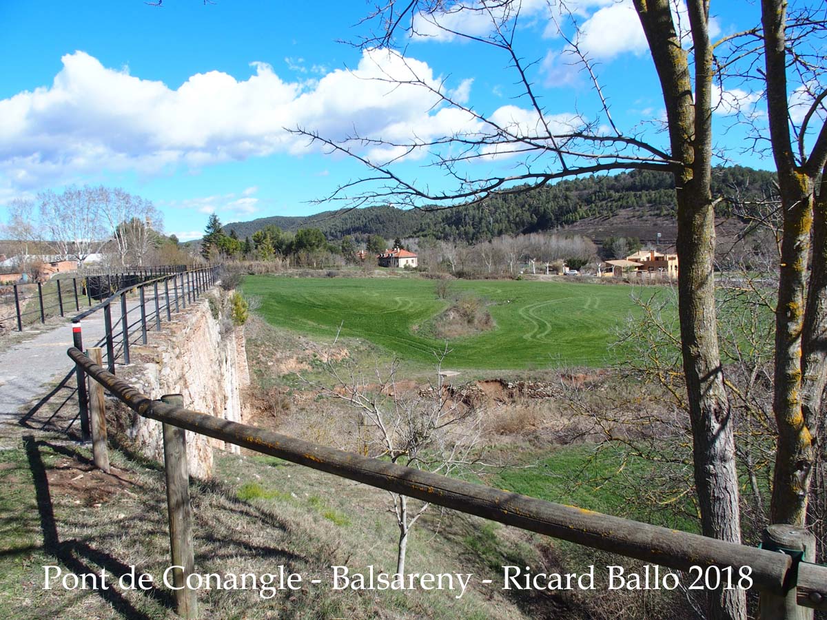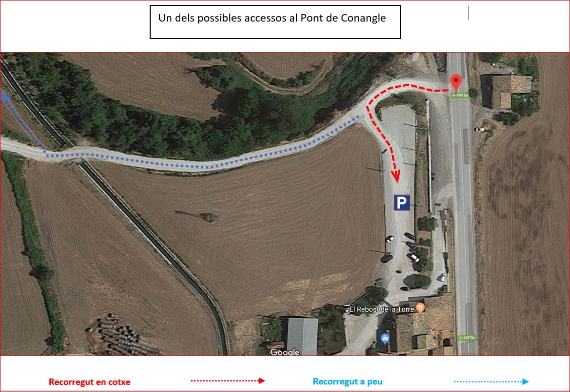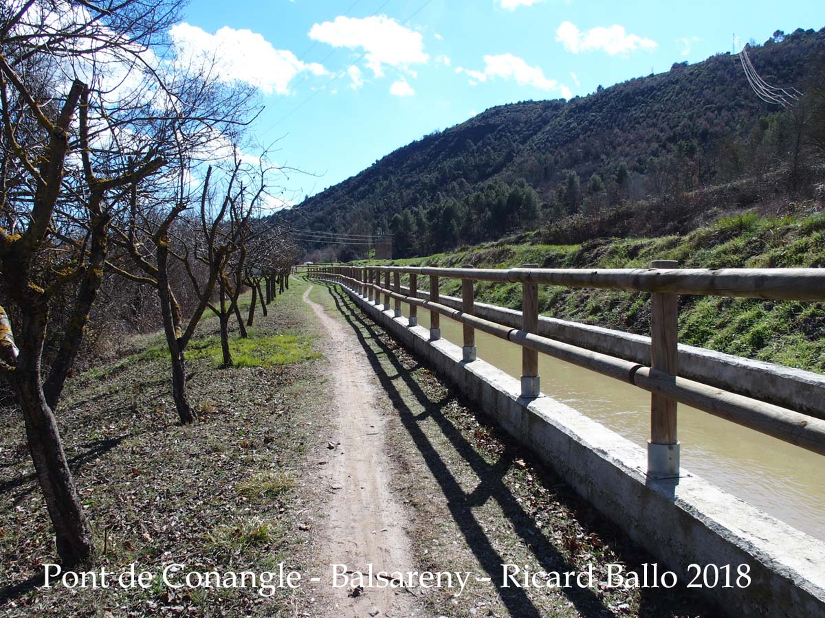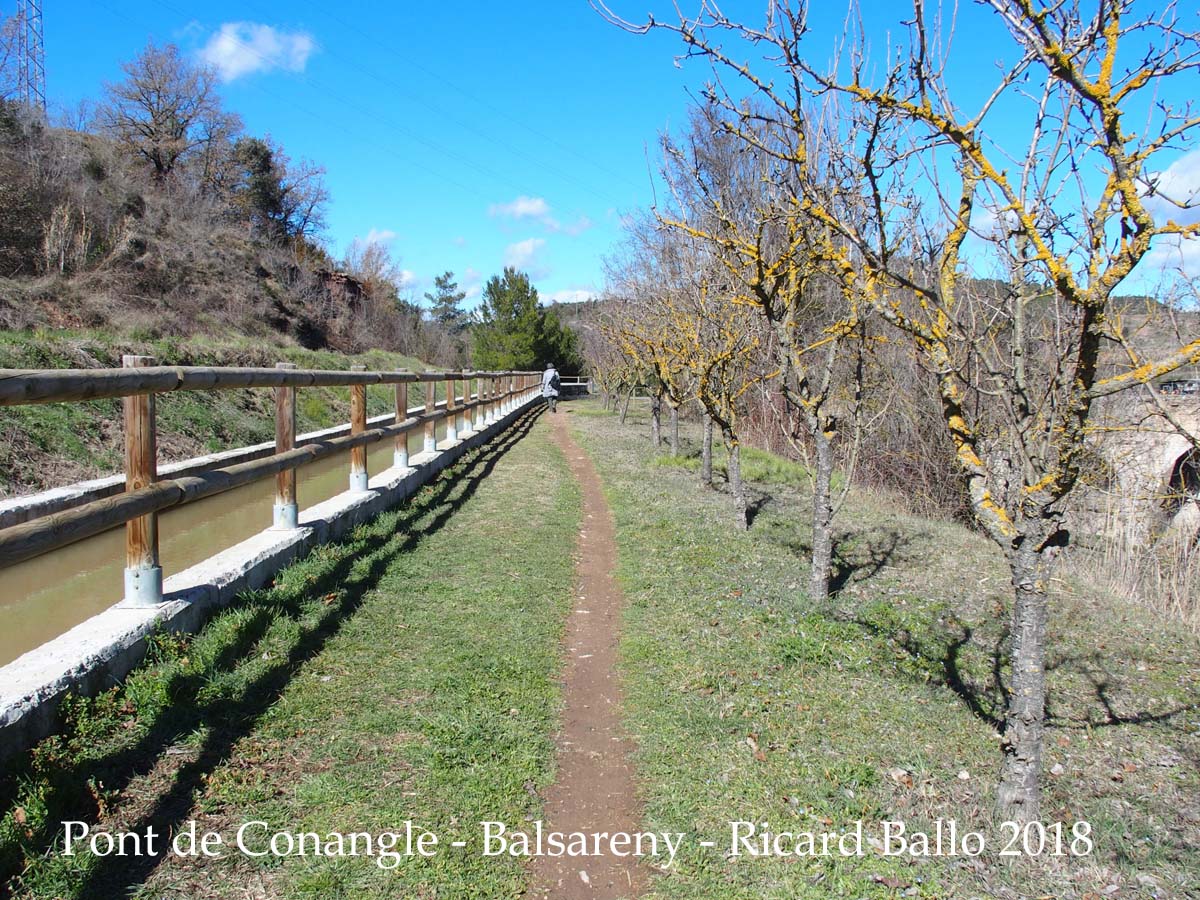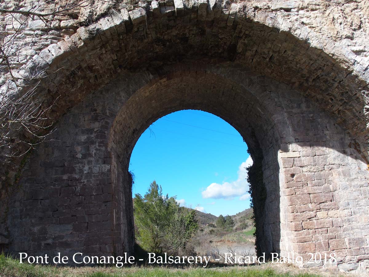 Situació: Pont-aqüeducte de dos ulls, aixecat sobre el llit de la riera de Conangle, just a la confluència dels termes de Balsareny i Sallent, poblacions ambdues de la comarca del Bages (Barcelona).