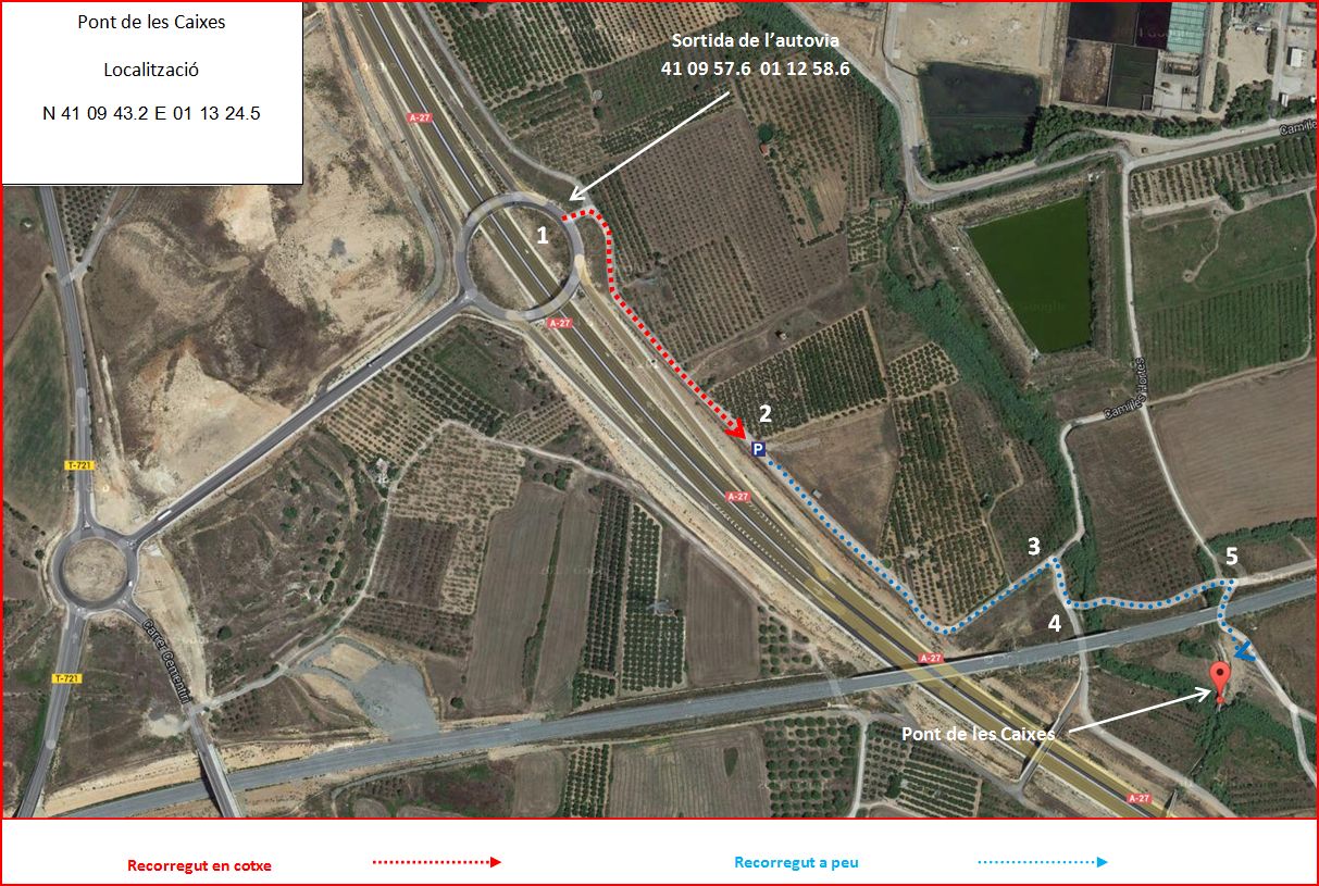 Havent accedit a la --> Vila romana de Centcelles, hem trobat un itinerari alternatiu per accedir des d’aquí, al --> Pont de les Caixes. Distància aproximada: 750 m.