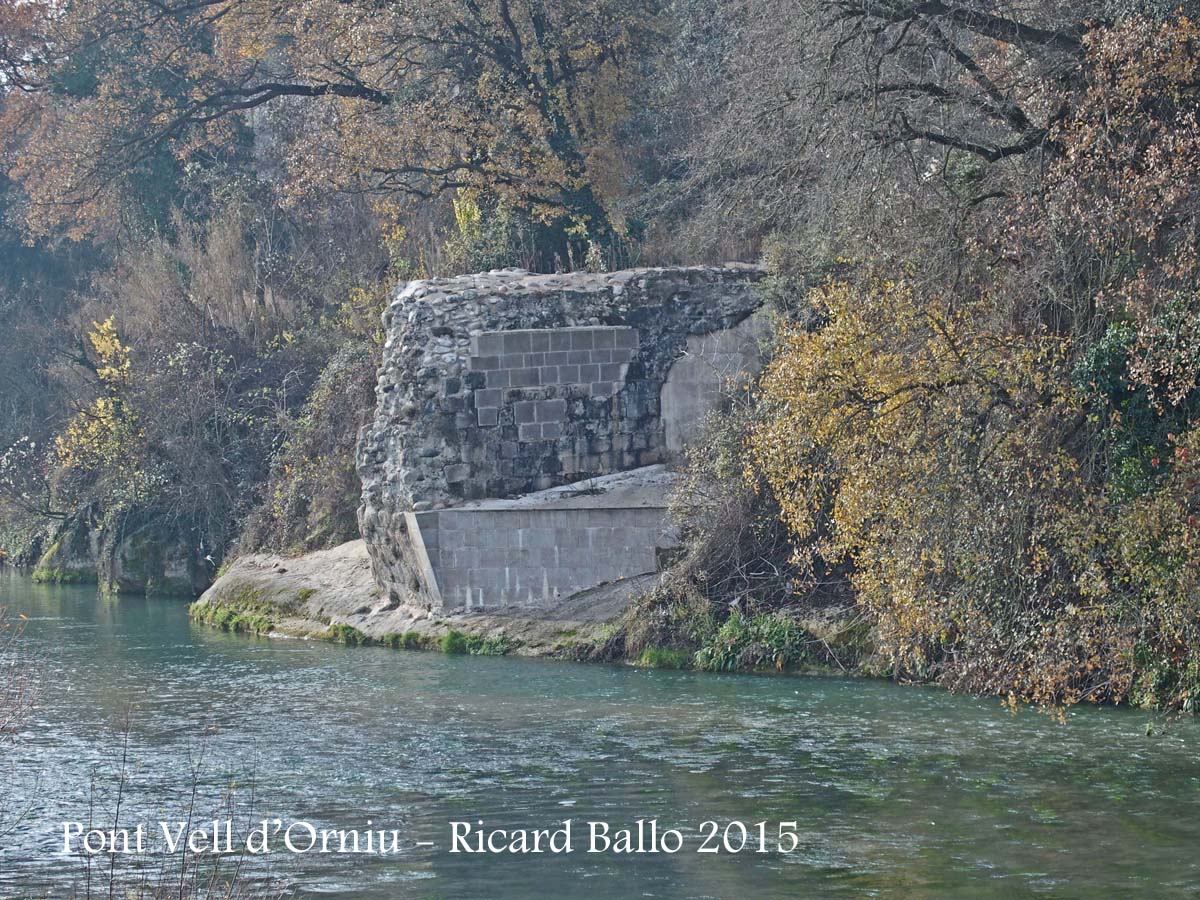 En el moment d’iniciar-se la intervenció, les poques restes conservades del Pont Vell d’Orniu, situades al marge d’Olvan estaven encaixonades i disfressades per un seguit de construccions modernes de poca entitat que es van eliminar.
