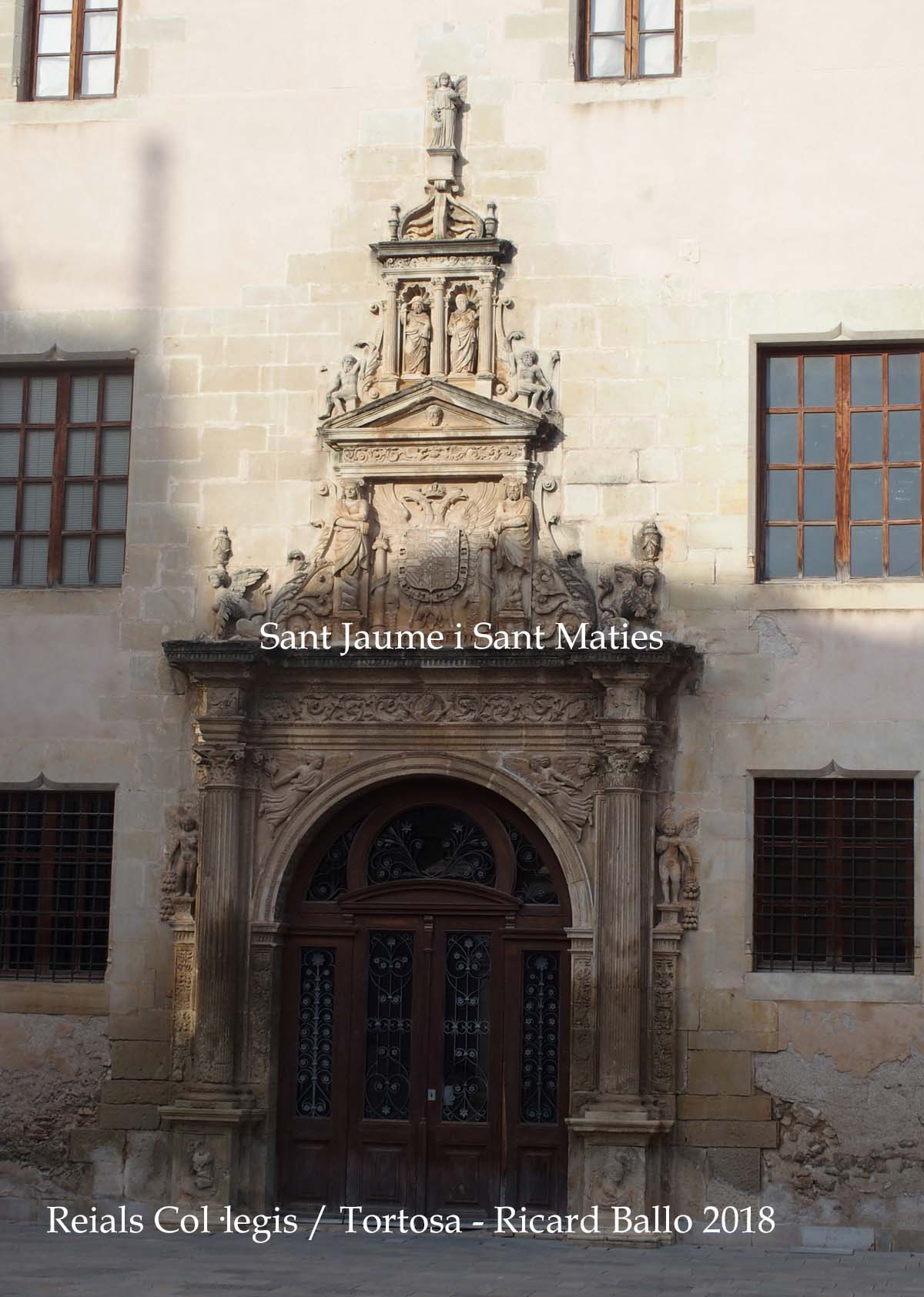 Les obres del col·legi de Sant Jaume i Sant Maties foren iniciades el 1564, i no és totalment segur que en fos l'autor el mestre tortosí Miquel Joan Anglès, que hi treballava el 1593.
