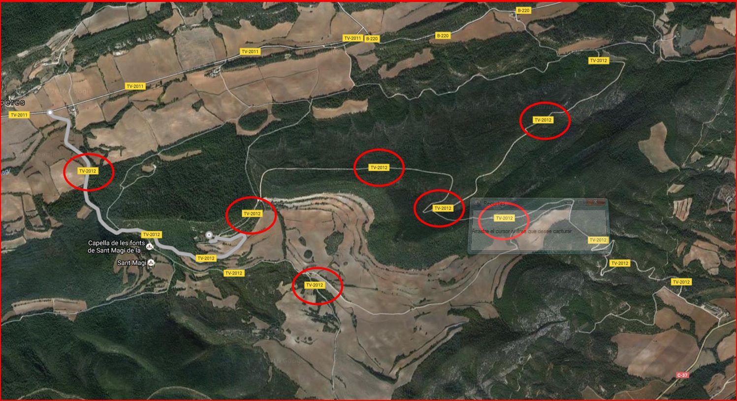 Curiositat: Fixeu-vos-hi que, a data d'avui, la carretera TV-2012 es desdobla i es contrau varies vegades ... segons Google Maps, naturalment.