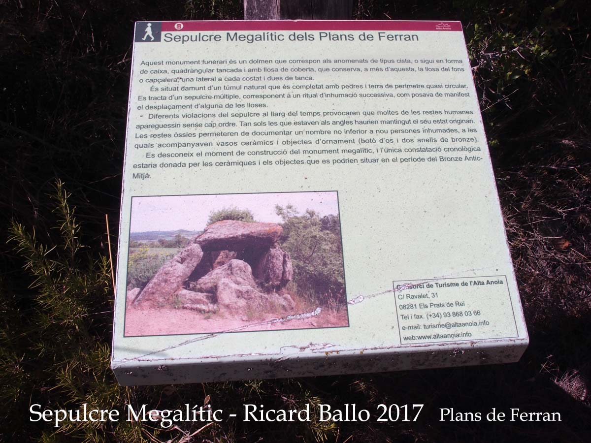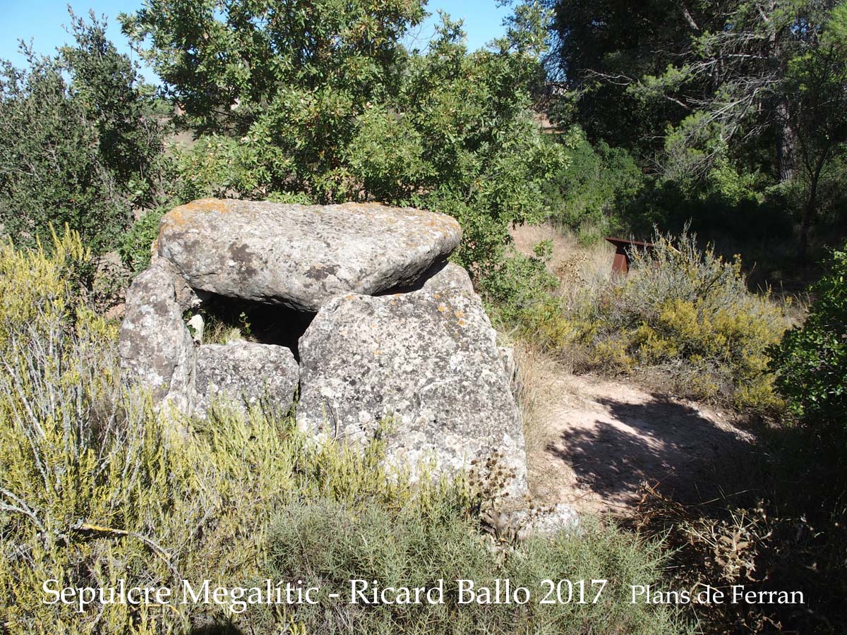Aquest sepulcre és de tipus petit quadrangular i tancat, format per una llosa de capçalera, i una a cada costat formant els laterals, dues de més petites com a tancament i la de la coberta que conserva un gravat en forma de creu, d’època incerta.