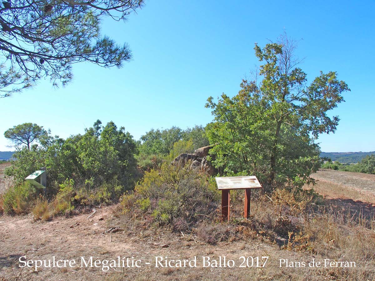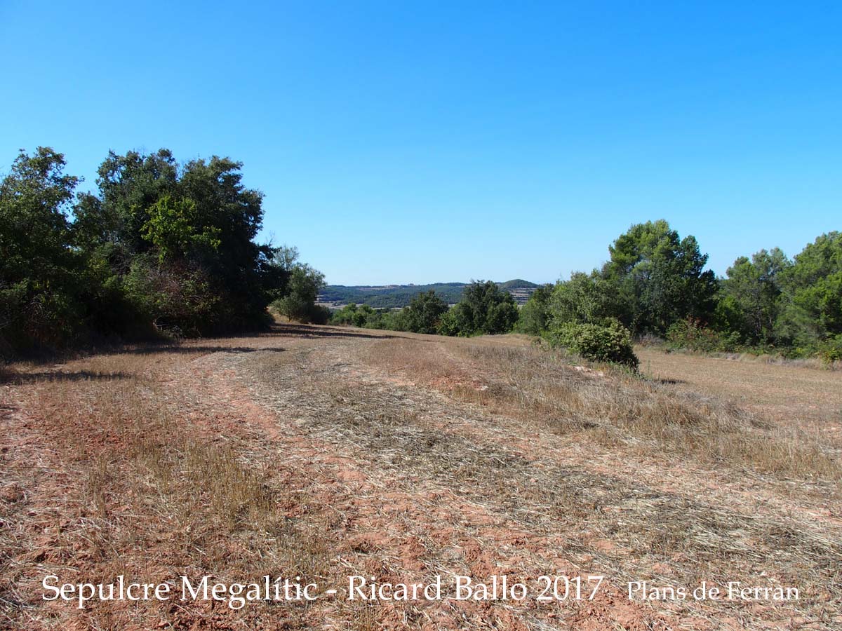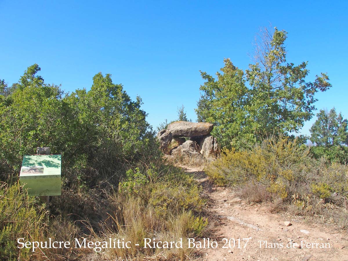 El trobarem a tocar del senyal del PK nº 14 de la carretera C-241-e (C37) – (Santa Coloma de Queralt / Igualada) - Hi ha un evident indicador, però que està plantat uns quants metres allunyat del sepulcre, que a més no està a tocar de la carretera, sinó que està uns quants metres endins d’uns terrenys de cultiu, accessible trepitjant un caminoi ben fresat. Hem aparcat aquí mateix.