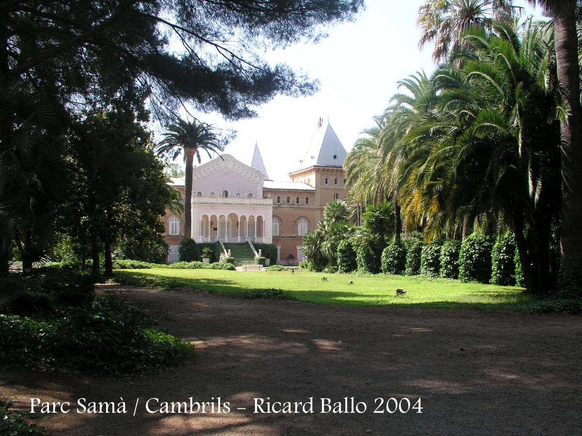 El Parc Samà, conjunt exemplar d'eclecticisme romàntic català, de regust colonial, de la darreria del segle passat, barreja de jardí botànic i zoològic i de bosc autòcton, ocupa un terreny planer de 13'52 Ha., entre camps d'avellaners, al sector N del terme municipal de Cambrils