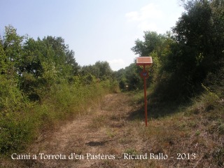Situats donant l'esquena a aquest comptadors, a l'altra banda del camí s'obre pas un discretíssim senderol que s'endinsa decididament entre l'arbreda.